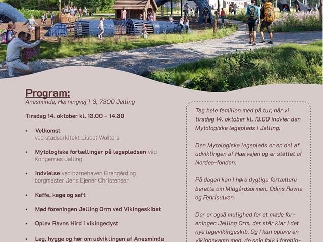 Vi indvier den mytologiske legeplads i Jelling tirsdag den 14. oktober kl. 13 (uge 42). Alle meget velkomne - tag endelig hele familien med.